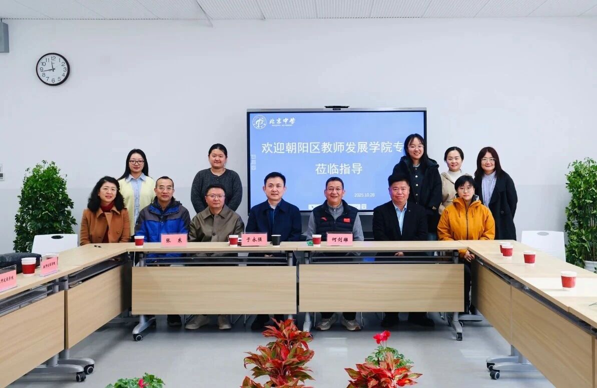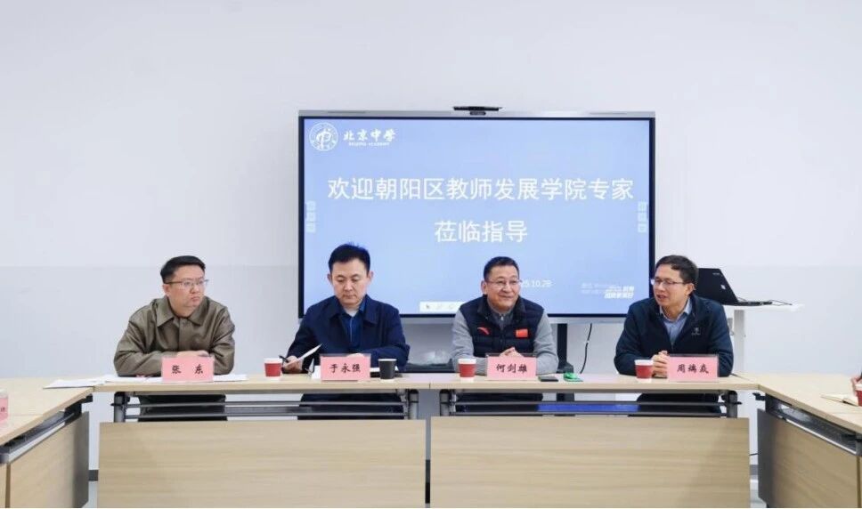 2025年10月28日上午,朝陽區教師發展學院副院長于永強、教師專業發展中心主任張東、帶領語文、數學、化學、地理學科培訓教師和政治學科兼職培訓教師,走進北京中學高中部,開展2025年朝陽區新任教師追蹤指導活動。北京中學黨委書記何劍雄、教學副校長周端焱及新任教師代表參與此次活動。