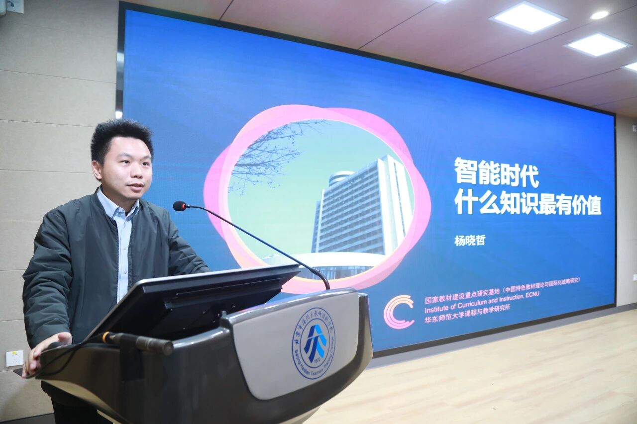 中國教育學會初中教育專業委員會學術委員會委員、華東師范大學課程與教學系書記以“智能時代什么知識最有價值”為題作報告,系統呈現從原始時代到互聯網時代的知識形態變遷,指出智能時代知識價值的核心正從“內容選擇”轉向“層次選擇”,當人工智能能夠自動化處理陳述性知識、執行程序性知識,人類的獨特價值需轉向更高階的元認知知識。楊教授提出,智能時代應確立以“人機協同”為核心的學習理念,需轉型為“基礎知識+智能賦能”的螺旋式知識學習模式,在實踐與反思中實現知識的內化與創新。