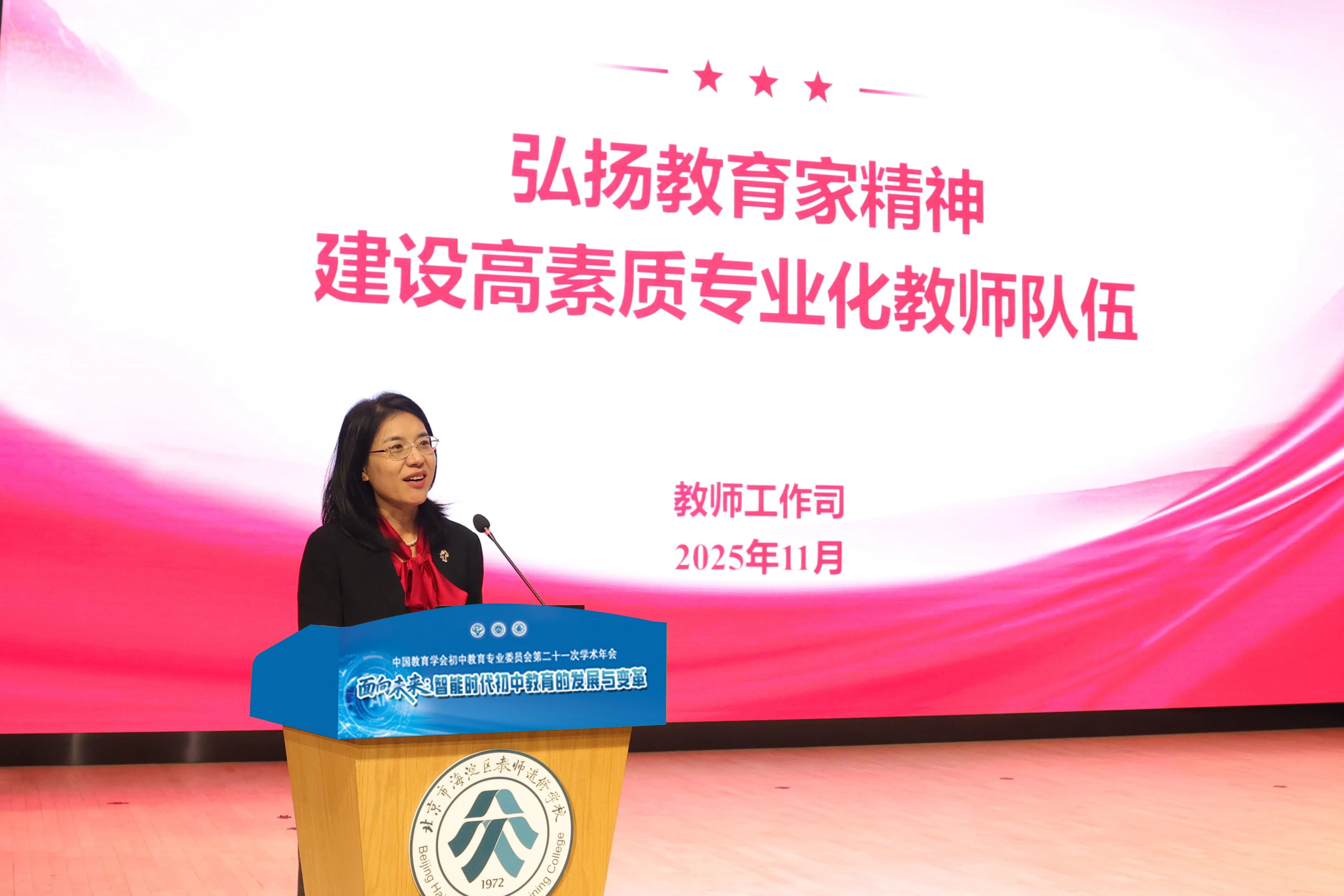 為深入貫徹黨的二十大及各全會精神,認真落實全國教育大會精神和《教育強國建設規劃綱要(2024—2035年)》的工作部署,推進教育、科技、人才一體化發展,充分發揮初中教育承上啟下的關鍵作用,推進義務教育優質均衡發展,辦強辦優基礎教育,扎實推動教育強國建設,2025年11月2日-3日,中國教育學會初中教育專業委員會第二十一次學術年會在北京市海淀區成功舉辦。本次會議是在中國教育學會初中教育專業委員會第九屆理事會成立之際召開,開啟了學術引領初中教育高質量發展的新篇章。