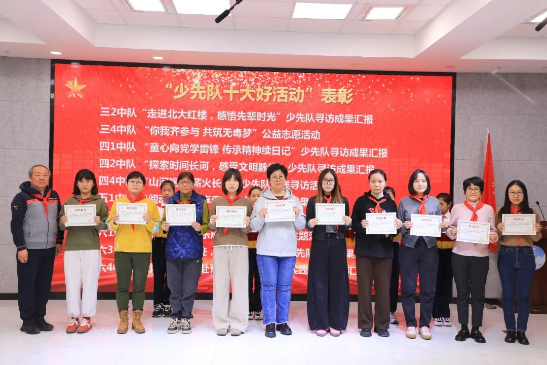 為表彰先進,樹立榜樣,學校少工委評選出了上一學年的“少先隊十大好活動”,并由校少工委主任、黨支部金強書記為獲獎中隊頒發了紀念證書。