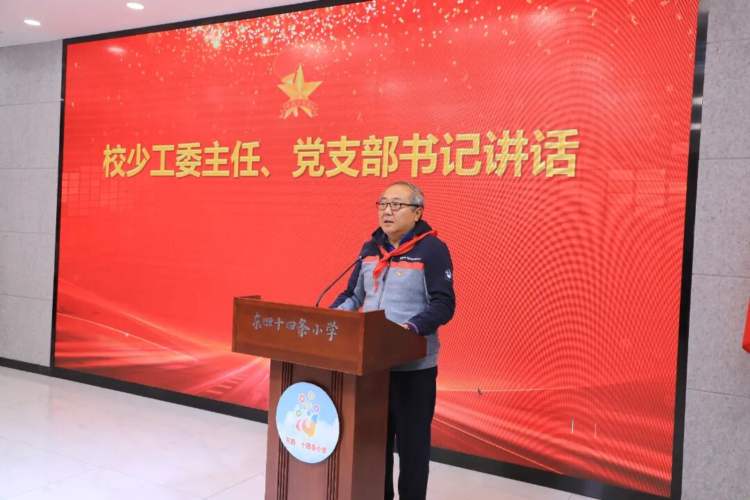 校少工委主任、黨支部金強書記發表了熱情洋溢的講話。金書記肯定了隊員們的優秀表現,并希望大家牢記習近平總書記的教導,努力做有志向、有夢想,愛學習、愛勞動,懂感恩、懂友善,敢創新、敢奮斗的新時代好少年。