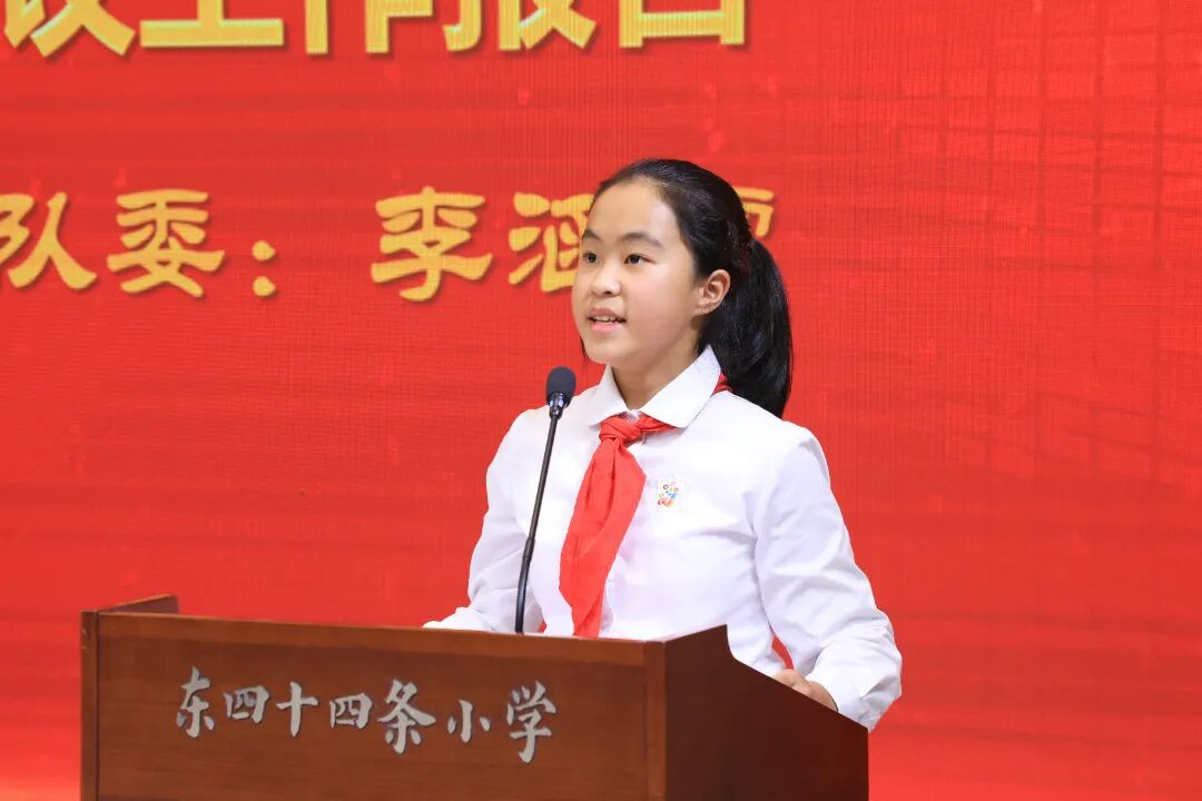 本次少代會的重要議程之一是成立新一屆大隊委員會。經過前期的民主推薦和公開選舉,13名優秀隊員脫穎而出,組成了新一屆大隊委。東城區少先隊總輔導員潘滌老師、校少工委主任、黨支部金強書記、德育景影主任、科研范燕妮主任為新一屆大隊委佩戴了光榮的大隊委標志。這不僅是榮譽,更是沉甸甸的責任。