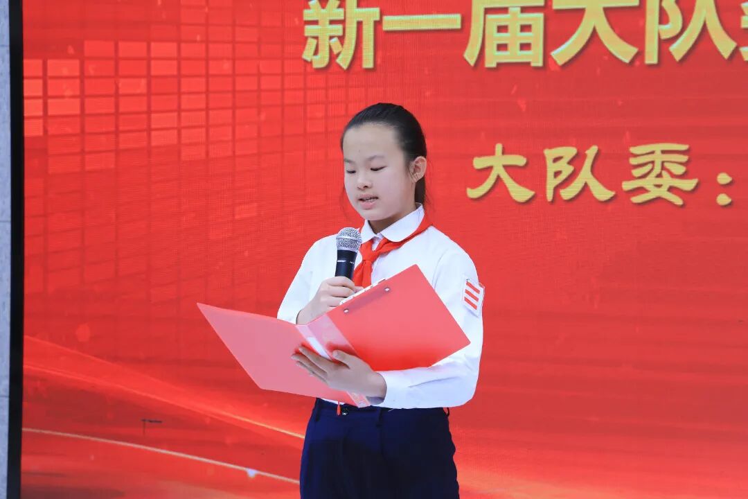 新一屆大隊委代表邱婉桐在發言中表示,新一屆大隊委必將不辜負老師和隊員們的信任,盡心盡力為集體服務,做好“領頭雁”。