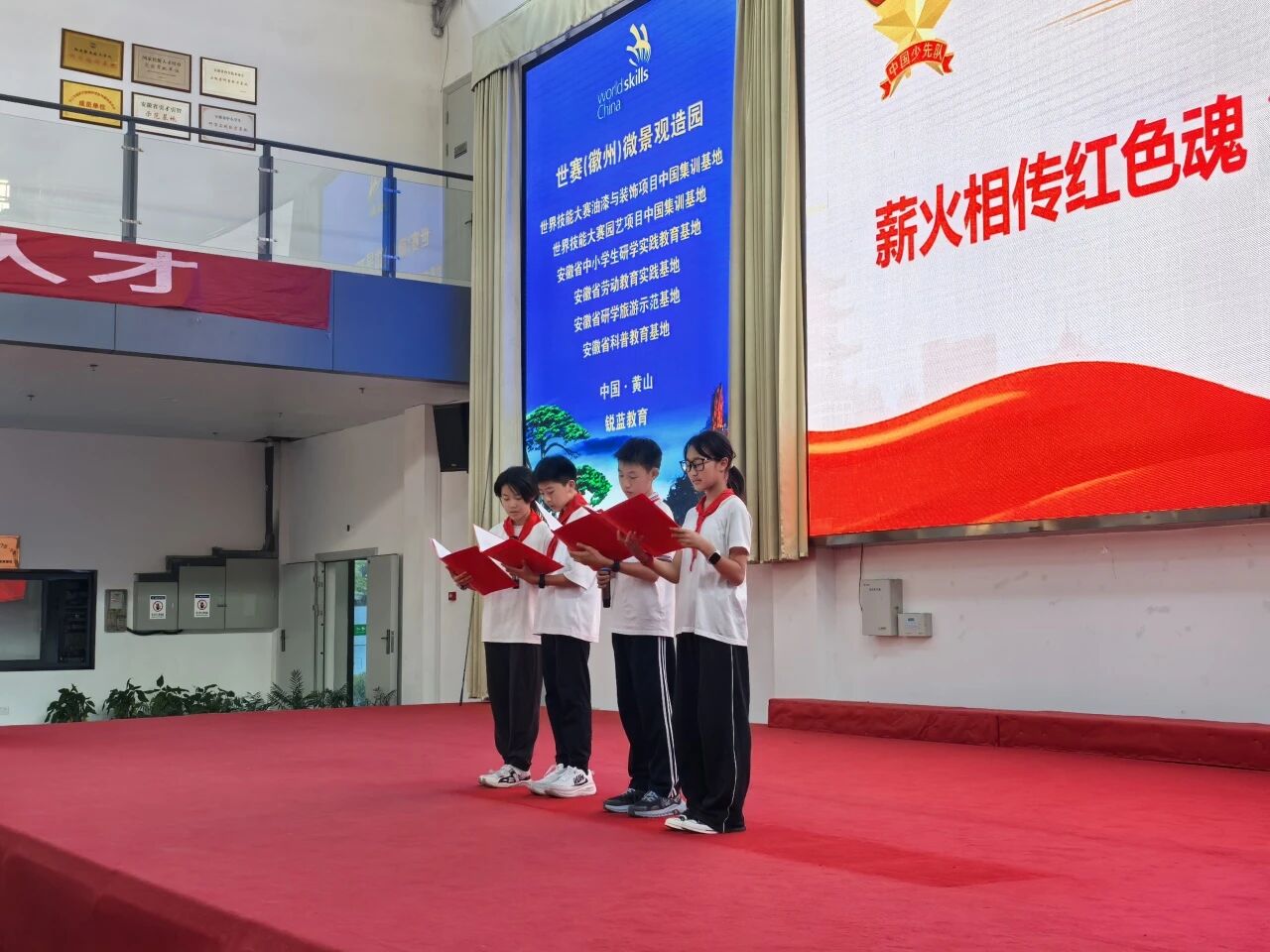 隨后,朱怡錦、孫汭琪、賈子環、吳曈四位同學帶來詩朗誦,他們的深情誦讀,將革命先輩的奮斗精神與新時代少年的使命擔當緊密聯結,引發全場共鳴。接著,在豈靖萱同學的指揮下,初一同學齊唱《中國少年先鋒隊隊歌》,嘹亮的歌聲回蕩在園藝基地的上空。