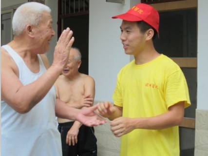 小分隊(duì)不僅為老人送去百余斤的西瓜,在炎炎夏熱中為他們帶來(lái)一股清涼之風(fēng),同時(shí)還向老人們宣傳黨和政府的“老有所養(yǎng),老有所樂(lè),老有所學(xué),老有所教”等溫暖措施以及暑期防暑降溫日常生活常識(shí);另外該團(tuán)隊(duì)隊(duì)員還憑借其本身的專業(yè)知識(shí)僅僅圍繞“什么是中國(guó)夢(mèng)”“怎樣實(shí)現(xiàn)中國(guó)夢(mèng)”向老人解讀中國(guó)夢(mèng),活動(dòng)在隊(duì)員們?yōu)槔先顺暌磺t歌中拉下帷幕,最后老人們不舍的送隊(duì)員出門(mén),與隊(duì)員們一一握手道別表示感謝。