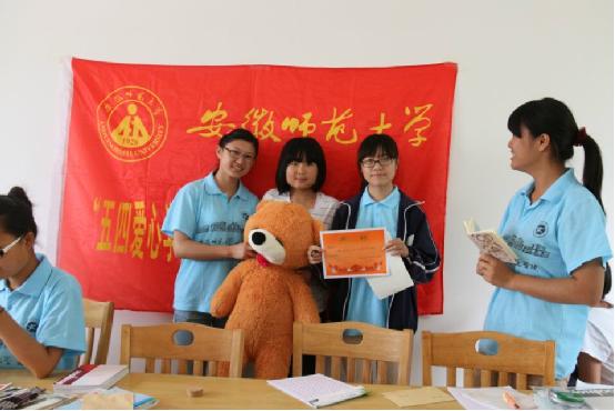從2012年安徽師大文院志愿者首次踏入岳西縣毛尖山以來,安徽師范大學文學院“五四愛心學校”赴岳西縣毛尖山愛心支教團隊已經走過了4年的實踐歷程。4年來,超過50名志愿者來到毛尖山鄉進行支教,完成了超過7萬字的成長記錄本,團隊累計支教時長超過1600小時。“陪伴是最深情的呵護。之所以又過來一次,也許是因為這里帶給我的感動太多太多了。”副隊長宋璨璨如是說。算上2014年,今年已經是她第二次來毛尖山支教了。