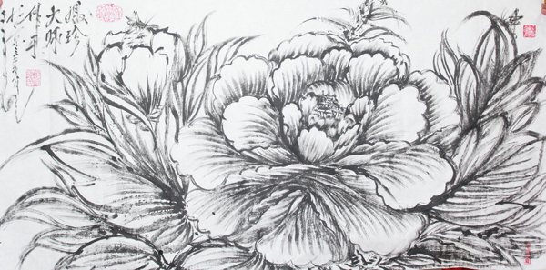 為了讓香港文匯報的記者朋友領略感受神奇的紙團畫藝術,殷鳳珍博士現場為他們創作了精品紙團畫牡丹,可以不夸張的講,彭總編是從第一筆一直觀看欣賞到最后一筆,真正地見證了紙團畫的完美與神奇,親見紙團畫創始人殷鳳珍博士高超的技藝和嫻熟的創作手法。二十幾分鐘后,在大家的見證下,殷鳳珍博士完成了她的紙團畫牡丹創作,一幅象征著富貴的黑白牡丹呈現在香港媒體朋友的面前,甚至連牡丹花上落的兩只蝸蝸都是那么有生命力,真得像是活得一樣!