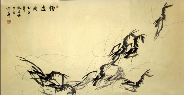 施海峰不但畫竹有成就,而且對畫蝦也有突破,近年來,他畫的蝦已經超出了寫實的范圍,加入夸張的成分,精氣神實足,被人稱為霸王蝦,不僅體現出蝦的力度,而且水流、風浪的感覺也躍然紙上,更是對水墨畫蝦大膽突破自成一斑。正是憑著他這種精益求精,堅韌不拔的精神,他的書畫技法驚人,受到業內外人士的一致好評。現關注他的人越來越多,近永恒世博環球養生博覽會并被評為全球指定禮品獎。今又為辛亥革命一百周年作畫《浩氣沖天》這幅紅竹特別耀眼,節節向上直達蒼穹有不擺手之志,圖中一枝昂然挺拔的主竹,圍著一群竹象征紅色革命精氣神,觸景生情仿佛浮現出當年轟轟烈烈的紅色革命運動就在眼前,這幅畫施海峰先生在紀念辛亥革命100周年書畫名家作品展活動以及在中國藝術界的突出貢獻、在人民大會堂、榮獲金獎。他的書法也獨樹一斑,曾被紫光閣名人書畫院、院長指定特邀書寫《心向奧運,翰墨中華》橫幅、赴泰國畫展,書法《風華正茂》被莫迪博、蒂耶莫科、特拉奧雷大使收藏,書法《友誼長存》由阿爾巴尼亞共和國駐華大使馬忠佩卡大使收藏。書法《中日友誼》有日本郵政建設大臣中山正暉先生收藏,他的竹子《高風亮節》被馬里共和國阿瑪杜.都瑪尼.杜爾總統收藏。