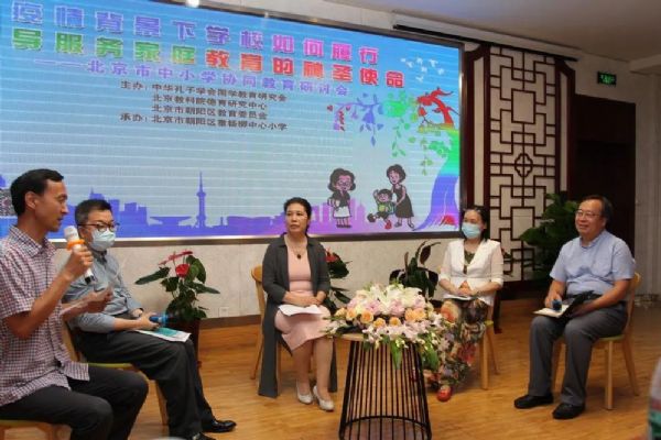 面對新時代,身處后疫情期,教育愈發需要家校聯動與協同,如何促進師生之間、親子之間、家校之間教育過程的整體優化,是時代之問,更是成長之問。為了更好的凝聚家校社協同育人力量,做好立德樹人的教育,2020年8月29日下午,中華孔子學會國學教育委員會、北京教育科學研究院德育研究中心和朝陽區教委共同主辦,北京市朝陽區垂楊柳中心小學承辦的“疫情背景下學校如何履行指導家庭教育的使命暨北京市中小學協同教育研討會”在北京市朝陽區垂楊柳中心小學楊柳書院召開。在開學前夕召開此次活動主要有以下三個目的: