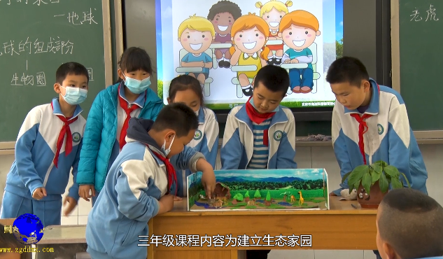 三年級課程內(nèi)容為建立生態(tài)家園。學(xué)生們合作互助創(chuàng)造出獨特的生態(tài)沙盤,通過這一過程,理解生物與環(huán)境的科學(xué)知識,感受自然界的神奇和創(chuàng)意。