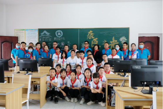 在新跑道啟用儀式上,四位朝氣蓬勃的康臣人將象征著希望和熱血的紅旗傳遞到學生們手中,寄望他們能在嶄新的跑道上擁有一個快樂的童年,也祝愿孩子們“六一”兒童節健康快樂!此外,康臣志愿者們還走入課堂,與學生們共話未來,激勵他們向英勇先烈學習,長大為家鄉和祖國作貢獻。