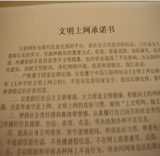 12月12日下午,廣安市鄰水縣太和學校召開教師會議,主要針對“遠離蛀蟲,文明上網”的主題展開了討論。班主任在各班召開了“做一個文明上網的好學生”的主題班會,會上師生互相交流網絡文化,在對待學生上網這個問題上以“疏”代“堵”,引導學生文明上網。同時該校師生共同簽署了《文明上網承諾書》。